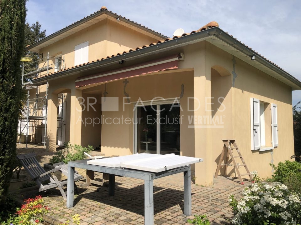 Cette maison située dans la commune de Chasselay s’est vue habillée du VERTIKAL RSE 50 : un revêtement semi-épais (plus onctueux et consistant qu’une peinture classique) à base de résine, qui apporte imperméabilité, respiration et souplesse aux façades.