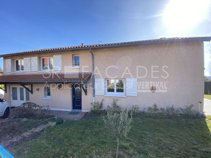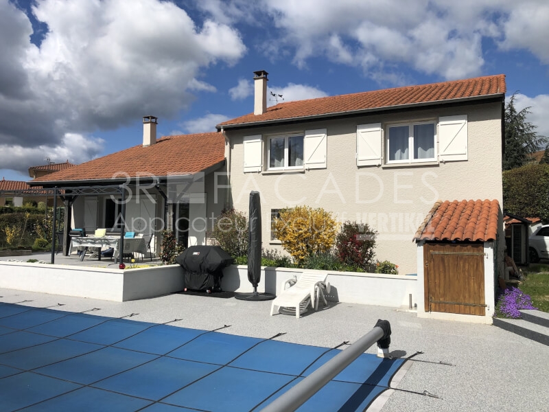 En tant que spécialistes de la rénovation de façade, nous avons suggéré aux propriétaires de cette maison à La-Tour-de-Salvagny (69890) l’application d’un revêtement mince à base de résine polysiloxane qui imperméabilise les façades tout en les laissant respirer. Assez onctueux et garnissant pour couvrir le relief existant, nous avons à la demande des propriétaires changer la teinte de la maison.
