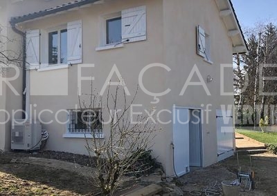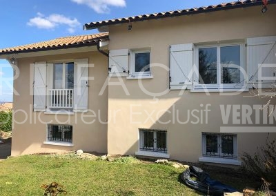 Le revêtement utilisé sur les façades de la maison à Chasselay (69380) est le VERTIKAL MINÉRAL : un film mince à base de résines parfaitement imperméable et très respirant.