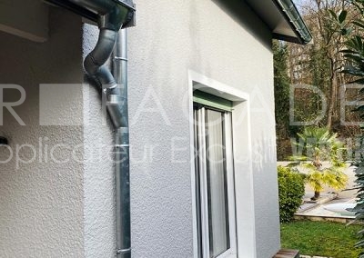 Le revêtement utilisé sur cette maison dans la commune de Tassin-La-Demi-Lune est le VERTIKAL RSE 50, plus garnissant qu’une peinture, riche en résines, imperméable, respirant et souple.