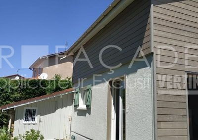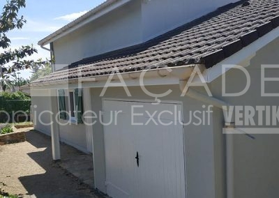 Le nettoyage des façades s’est fait avec le VERTIKAL NETTOYANT CPC (non-acide) Les revêtements utilisés sur ce chantier à Genay sont issus du système VERTIKAL FLEX. En primaire d’accroche : le film mince VERTIKAL CT. En deuxième couche intermédiaire, le revêtement semi-épais VERTIKAL FLEX INTER 3/5 très riche en résines à double réticulation (très grande souplesse). Et en troisième et dernière couche le VERTIKAL FLEX MAT 100, semi-épais également souple, imperméable et respirant.