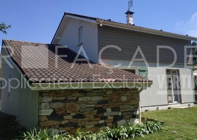 Ce procédé consiste à appliquer non pas deux mais trois couches de revêtements : un primaire d’adhérence « bloqueur de fonds », et deux couches de revêtement semi-épais imperméable (protège parfaitement de l’humidité), microporeux (conserve la respiration des murs) et souple (encaisse les mouvements de maçonnerie et anticipe le faïençage du support) !