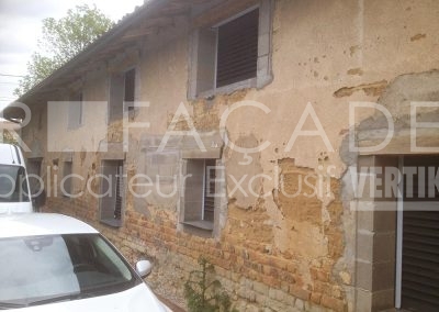 Notre intervention sur cette maison en pisé tout en longueur du début du XXè siècle située à Ambérieux-en-Dombes a nécessité le piquage du crépi existant : il était vieillissant et tombant. En tant que façadiers, nous sommes habilités à effectuer tout type de travaux sur les murs de la maison soit : l’enduisage ET la peinture.