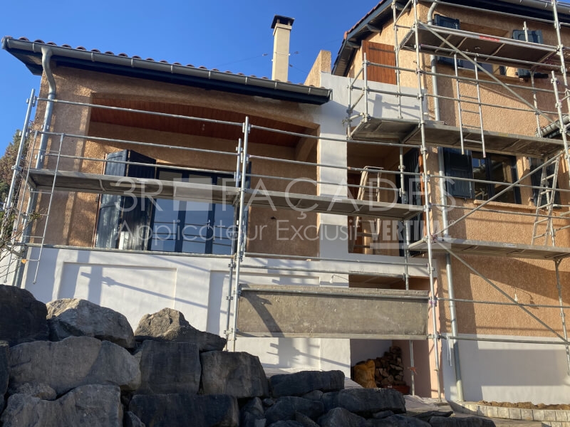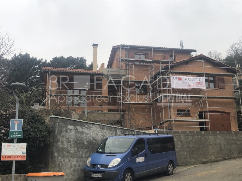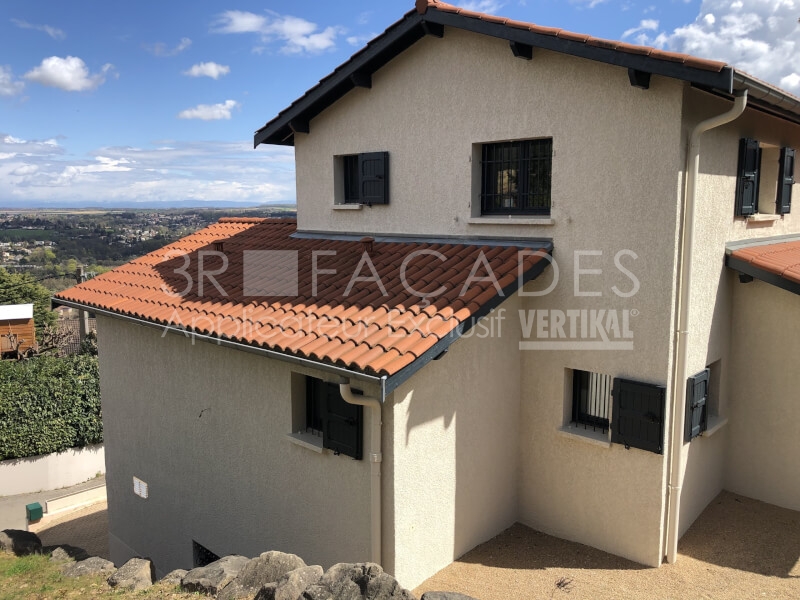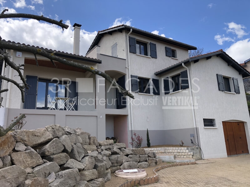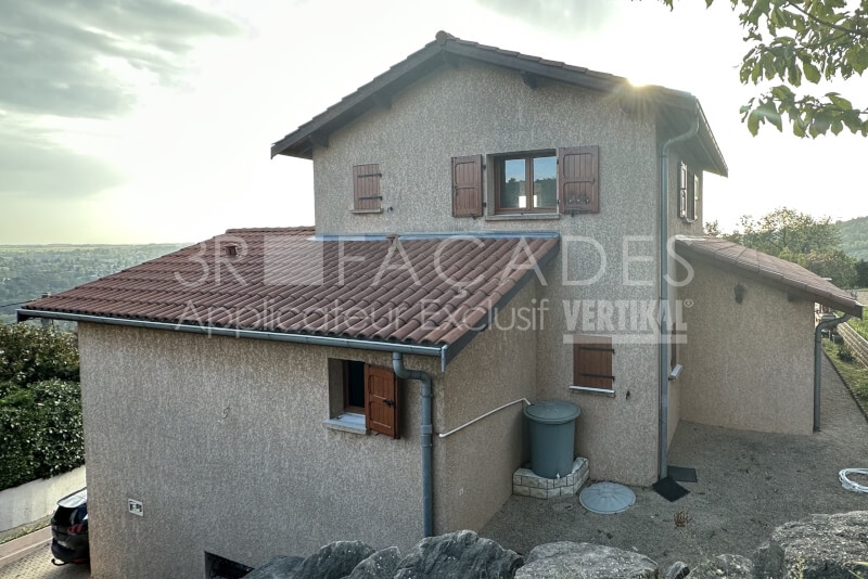 Protection des pieds de murs, anticipation de la fissuration sur la face la plus propice aux défauts de dilatation des matériaux, imperméabilisation et protection à long terme des murs restant, cette maison située à Couzon-au-Mont-d’Or (69270) retrouve une nouvelle jeunesse pérenne.