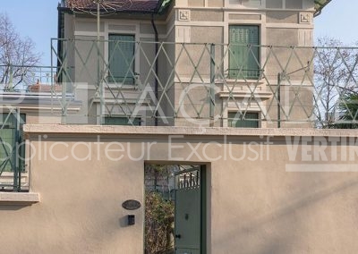 Le revêtement de finition utilisé sur les façades de cette maison dans le quartier de Monchat à Lyon 3 est le VERTIKAL MINÉRAL : revêtement mince imperméable et respirant.