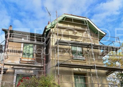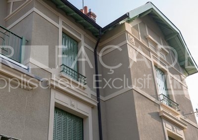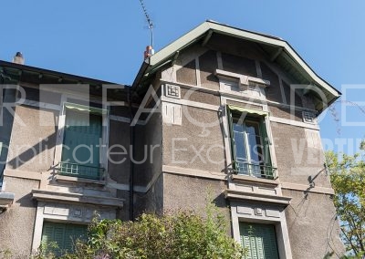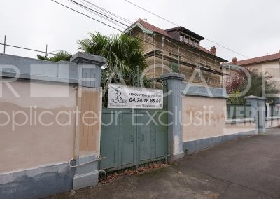 Cette demeure de 1908, située dans le quartier de Monchat dans Lyon 3è, connaissait plusieurs défauts : la peinture existante s’écaillait, sur de nombreuses parties de la maison l’enduit existant était soufflé, de nombreux appuis de fenêtres étaient cassés, des remontées d’humidités capillaires étaient visibles en pied de murs, et de par son âge et son manque d’entretien les façades étaient encrassées.