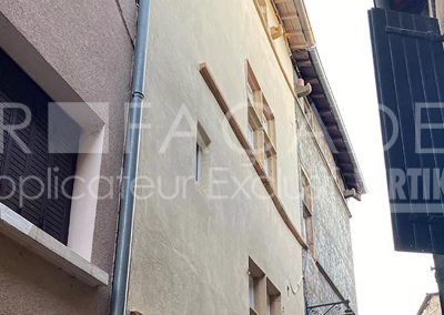 Rénovation d’une maison du XVIème siècle dans le village de Chasselay ! De gros travaux ont été prévus pour ce chantier notamment le sablage des fenêtres à menau ainsi que l’enduisage des parties les plus abîmées. Après quoi, pour une meilleure protection une plus longue pérennité nous y avons appliqué le VERTIKAL MINERAL : un revêtement mince parfaitement imperméable et microporeux qui assure la bonne respiration des murs !